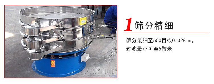 1、篩分細至500目或0.028mm,過濾可至5微米;