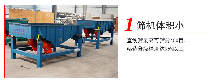 1、直線篩可篩分400目,篩選分級精度達96%以上。