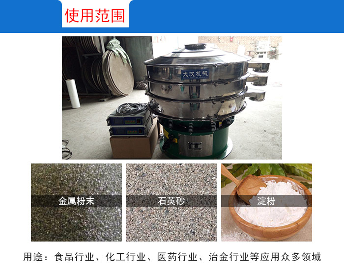 食品:按國家衛生標準要求設計生產超聲波振動篩可篩分面粉、咖啡粉、可可粉、調味品、食品添加劑等;