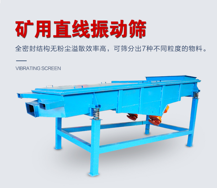直線振動篩適用于0.74-10mm,含水小于7%,無粘性物料的任何干式物料的篩分。具有能耗低,效率高、結構簡單、以維修、全封閉結構無粉塵溢散的特點,更適合流水線作業篩分。主要用于磨料磨具原料、化工、塑料、樹脂粉、陶瓷原料、冶金、建材、糧食、化肥等行業中的干式粉狀、細顆粒狀或微分物料的篩分。