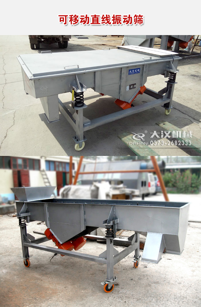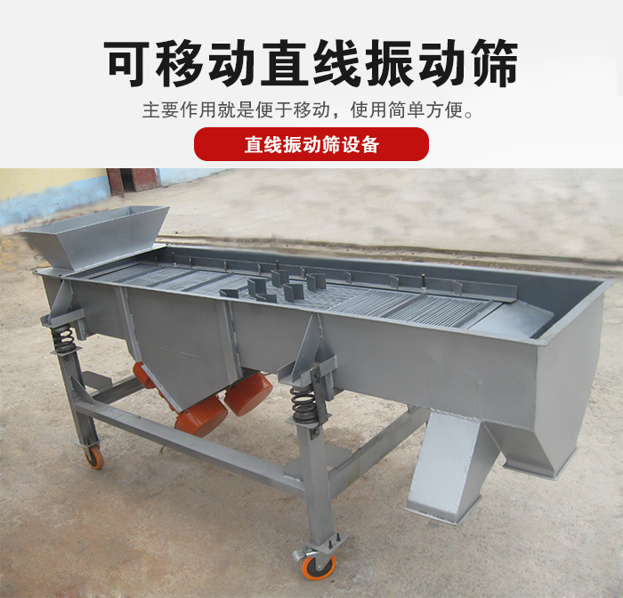 可移動直線振動篩針對的是一些使用場景不固定的用戶,便于移動所改造而成的。主要作用就是便于移動,簡單方便。