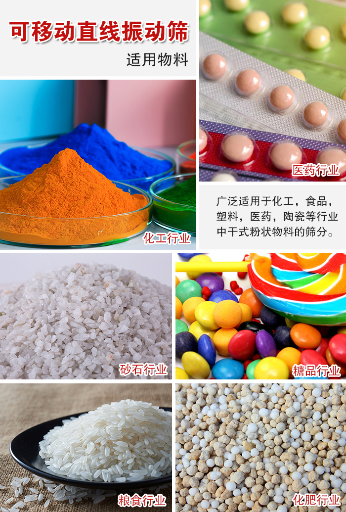 該產品廣泛適用于化工,食品,塑料,醫藥,冶金,玻璃,建材,糧食,化肥,磨料,陶瓷等行業中干式粉狀物料的篩分。