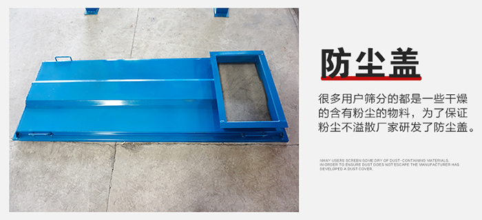 防塵蓋:很多用戶篩分的都是一些干燥的含有粉塵的物料,為了保證粉塵不溢散廠家研發了防塵蓋。