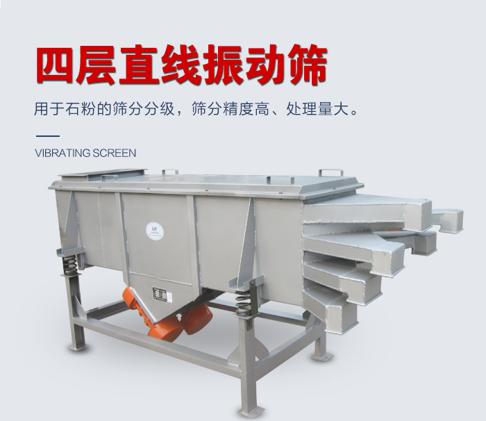 整機(jī)為碳鋼材質(zhì)四層五出口,用于石粉的篩分分級(jí),篩分精度高、處理量大。