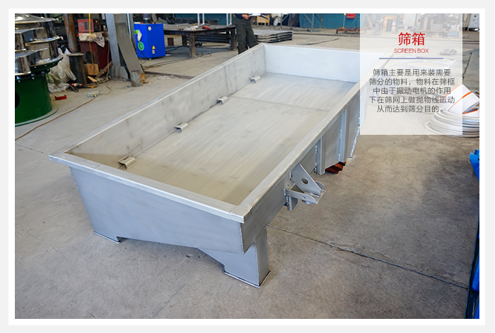 篩箱:篩箱主要是用來(lái)裝需要篩分的物料,物料在篩框中由于振動(dòng)電機(jī)的作用下在篩網(wǎng)上做拋物線運(yùn)動(dòng)從而達(dá)到篩分目的。