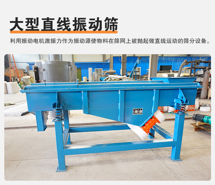 大型直線振動篩是一種利用振動電機(jī)激振力作為振動源,是物料在篩網(wǎng)上被拋起,同時(shí)做直線運(yùn)動的一種振動篩分設(shè)備。篩分合格物料經(jīng)過多層篩孔從各自合格的篩孔漏出,從而獲得高質(zhì)量的成品料。