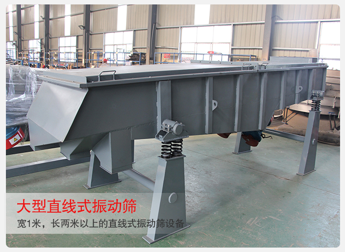 大型直線式振動篩簡稱大型直線篩也叫大型直線震動篩,是種大型篩分設備,寬1米,長兩米以上的直線式振動篩設備都屬于大型直線式振動篩。比如1020直線式振動篩1025直線式振動篩,1030直線式振動篩都屬于大型直線式振動篩的一種。