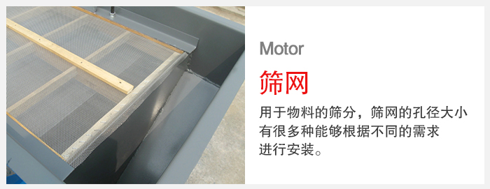 篩網:主要用于物料的篩分,篩網的孔徑大小有很多種能夠根據不同的需求進行安裝。