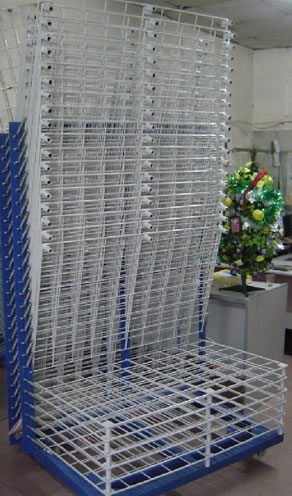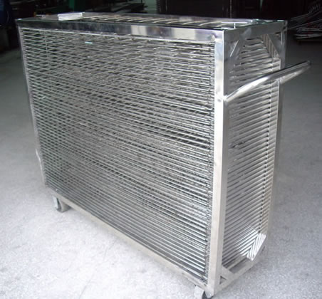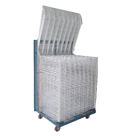 | 千層架,又叫絲印千層架、乾燥架、千層車、晾曬架、晾紙架、網架、層架臺車。適用于印刷、上膠、噴漆、上色,濺鍍後的晾乾置放器材。活動式多層網格設計,置放空間大,操作方便,節省車間、庫房面積,并可適用於所放產品的常溫晾乾和進焗爐高溫烘烤。