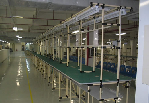 線棒工位柔性系統采用覆塑管與種類豐富的聯結件配合,組合成形式多樣的工位器具,已廣泛應用于家電、汽車、輕工、電子等行業的工廠中,是物流一體化的必備工具。