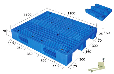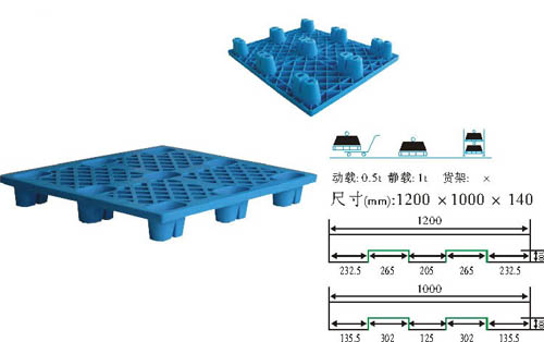| 塑料托盤(pán)(pallet)是為了便于貨物裝卸、運(yùn)輸、保管和配送等而使用的由可以承載若干數(shù)量物品的負(fù)荷面和叉車(chē)插口構(gòu)成的裝卸用墊板。它是物流產(chǎn)業(yè)中最不起眼,卻又無(wú)處不在的一種物流器具,是靜態(tài)貨物轉(zhuǎn)變?yōu)閯?dòng)態(tài)貨物的主要手段。盡管只有一米見(jiàn)方大小,卻“可以移動(dòng)整個(gè)地球”,所以又叫做“活動(dòng)的地面”、“移動(dòng)的貨臺(tái)”。